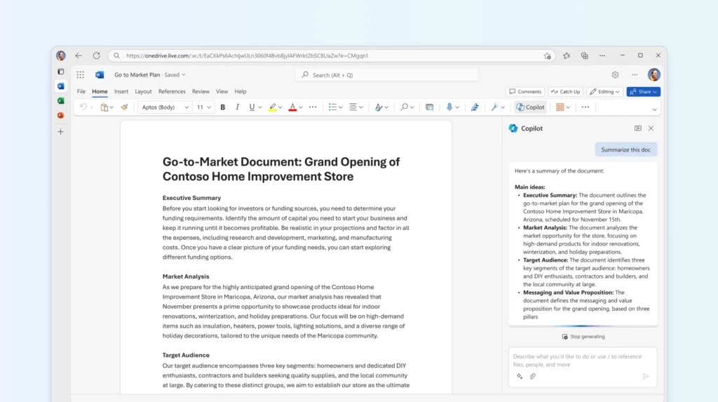 Microsoft 365 Copilot operates as an intelligent layer across workplace applications. In Word, it can generate structured drafts from brief prompts, refine language, and summarize lengthy documents in seconds. In Excel, it interprets complex datasets, identifies trends, and produces visual insights through simple natural language queries. Instead of manually building formulas or scanning spreadsheets line by line, users can ask Copilot direct questions and receive actionable analysis.